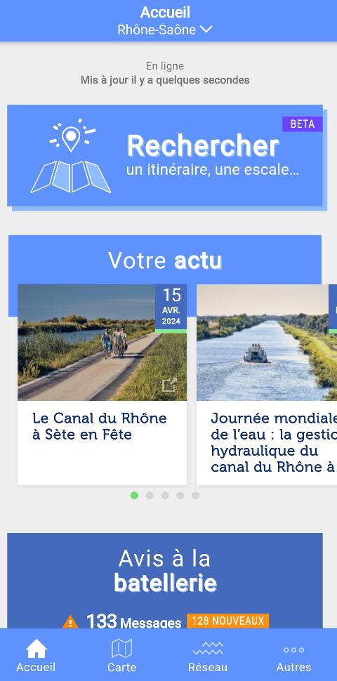 Il est également possible de consulter l’actualité généraliste et touristique, toujours en lien avec les voies navigables, à partir de l’accueil, dans la rubrique dédiée dont les derniers titres s’affichent.